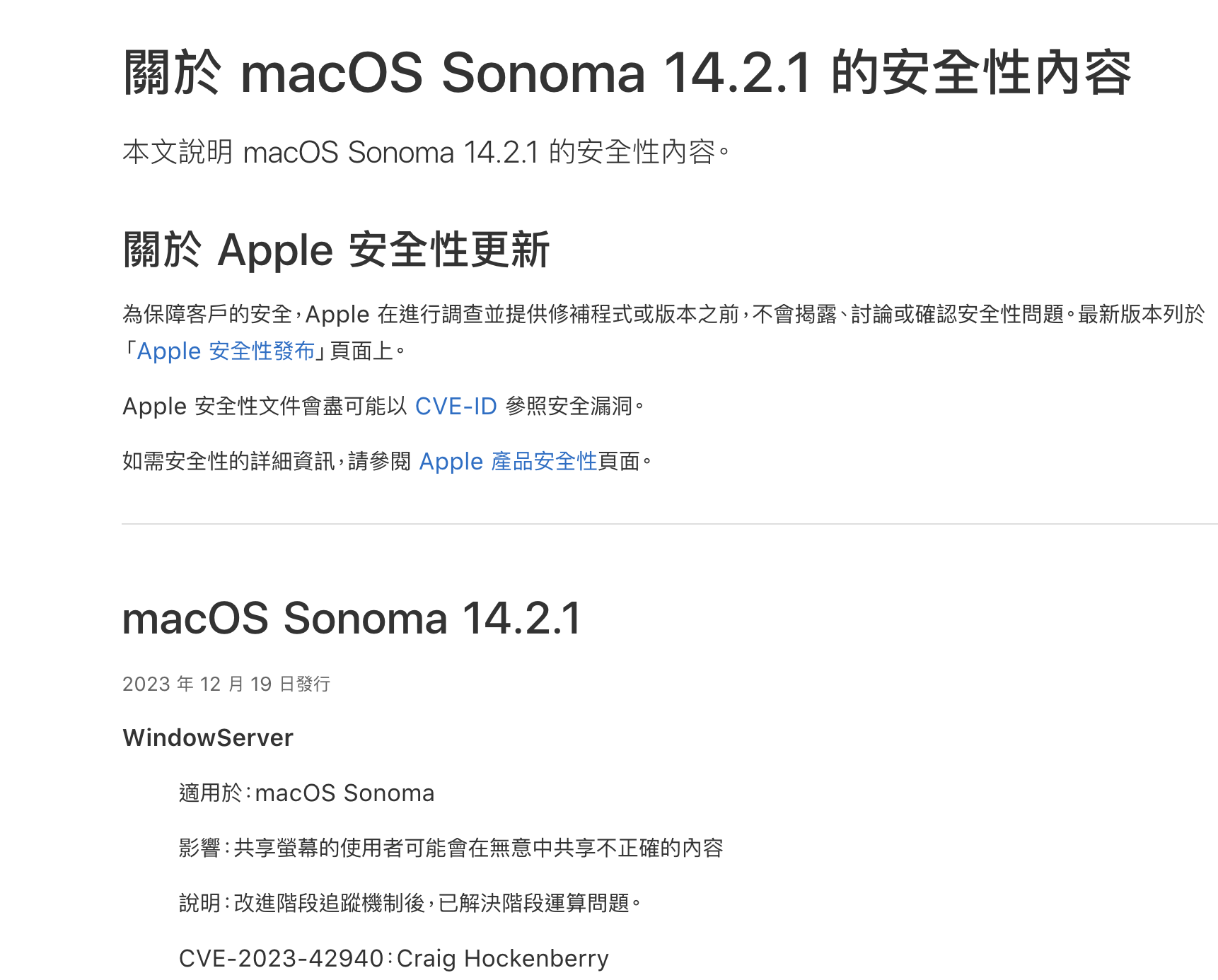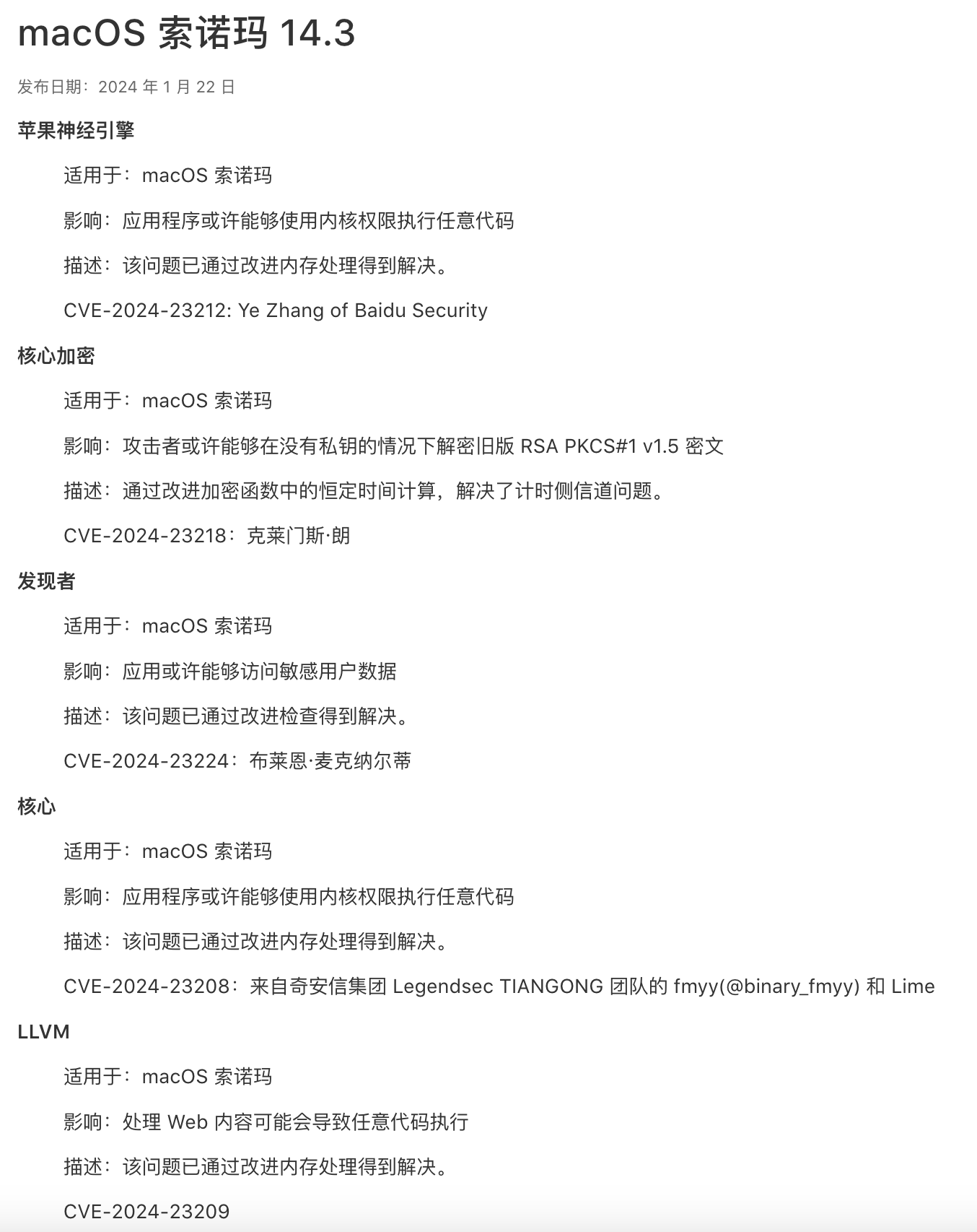 那我们随便点开一个最新的macOS安全更新来看看他都更新了些啥吧。